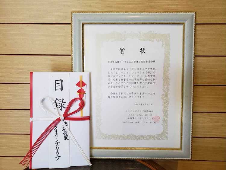 令和2年度 船橋翼ライオンズクラブ主宰「まちづくり.ひとづくり 夢 応援プロジェクト」を受賞しました